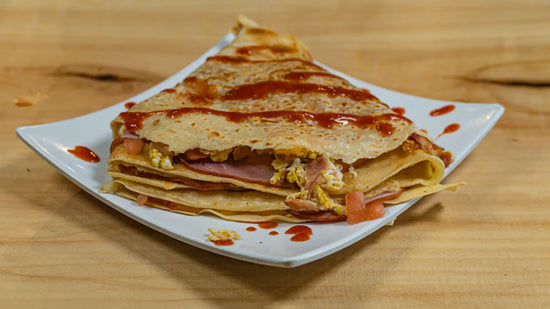 Scrambled Egg, Bacon, Ham, Cheddar, Tomatoes